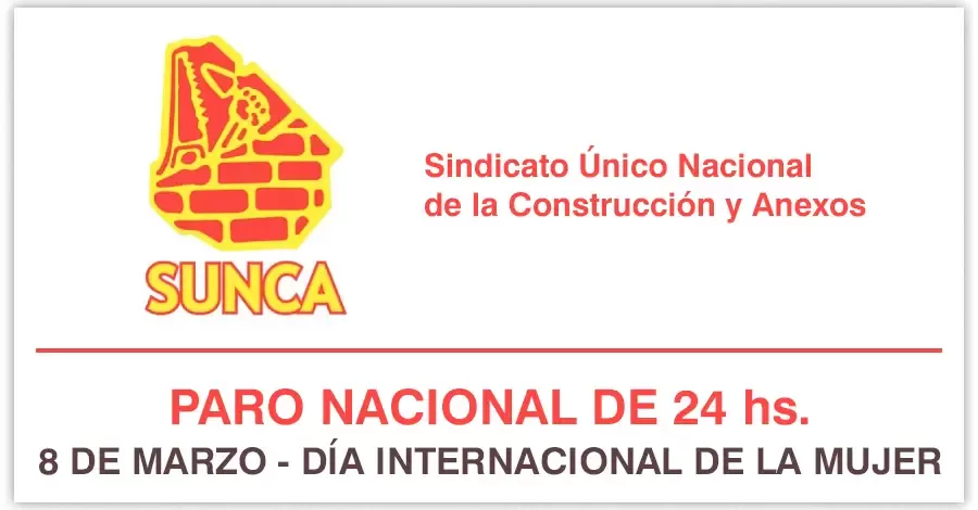 El área de prensa del SUNCA comunicó la resolución de convocar a un paro nacional en el marco del Día Internacional de la Mujer, así como sumarse a todas las actividades, movilizaciones que se realicen en ese día.