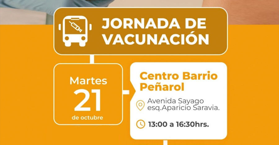 El Marte 21 de octubre de 13 a 16:30 horas se realizará un a jornada de vacunación en el Centro de Barrio Peñarol.