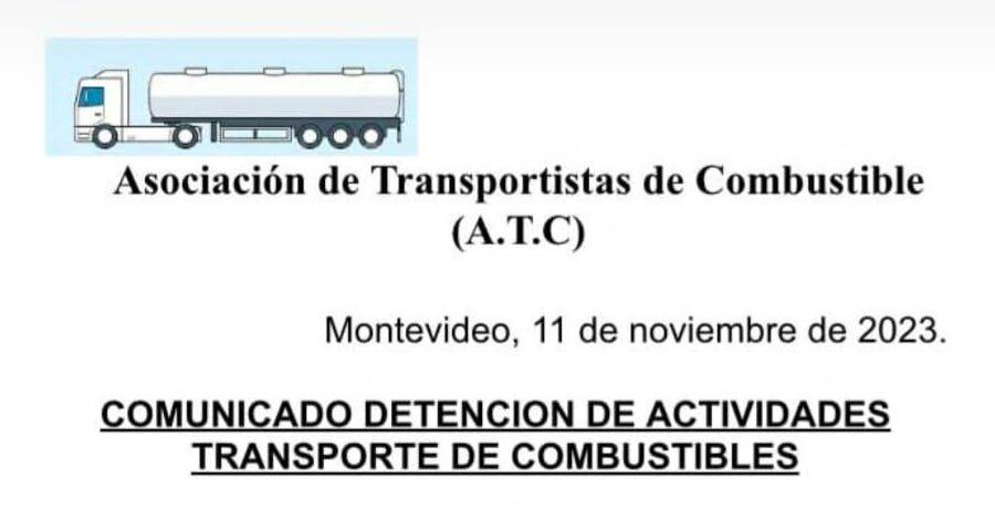 La Asociación de Transportistas de Combustible (A.T.C.) emitió un comunicado en donde transmite la detención de actividades desde el 13 de noviembre.